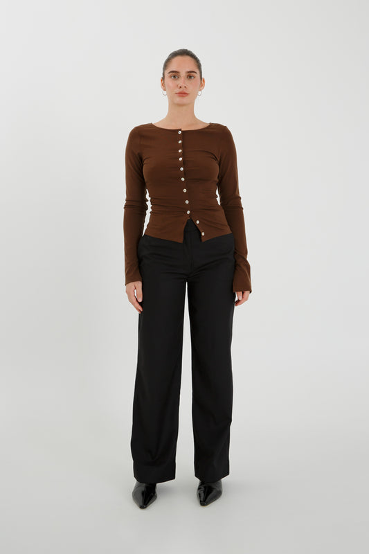 Back in StockButton-Through Long Sleeve Top Ciocco