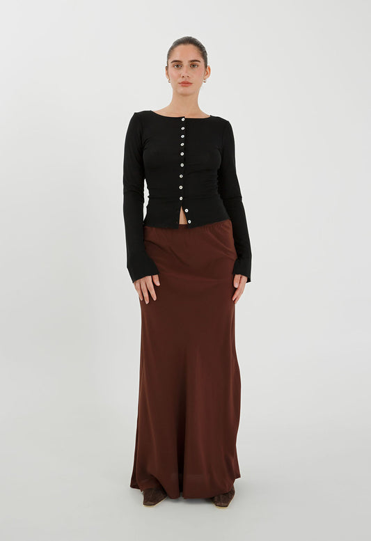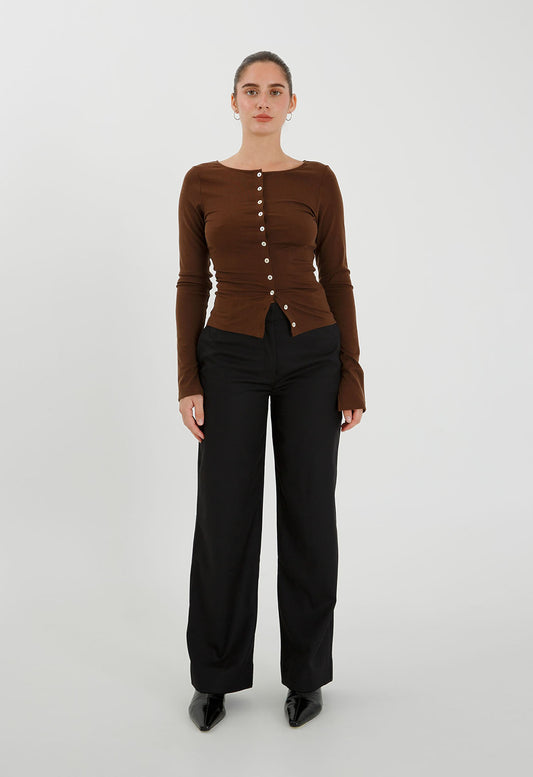 Back in StockButton-Through Long Sleeve Top Nera