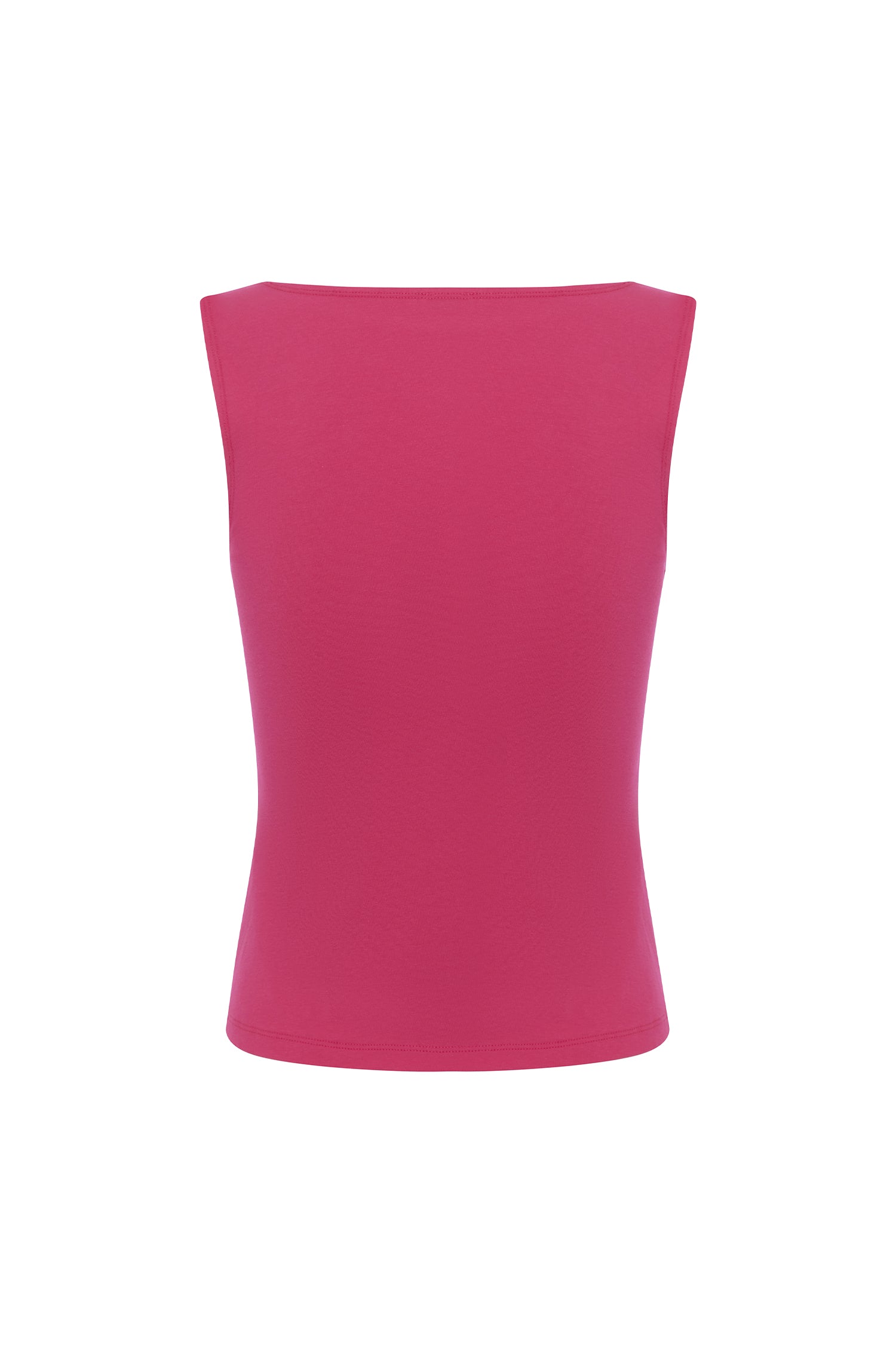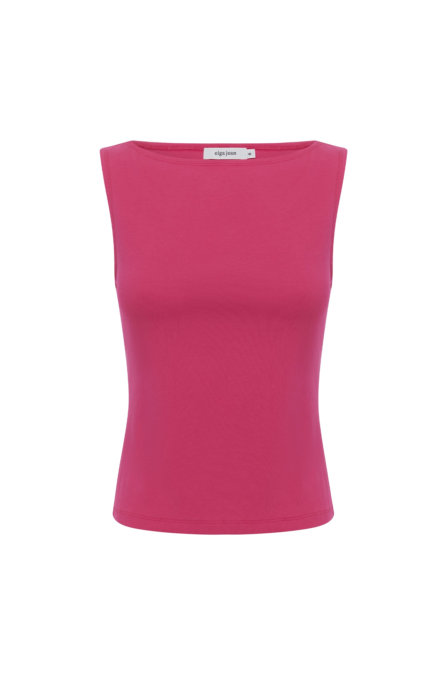 Sleeveless top in soft jersey. Designed with a shallow bateau neckline. Made from a cotton-elastane blend for a breathable, flexible fit.