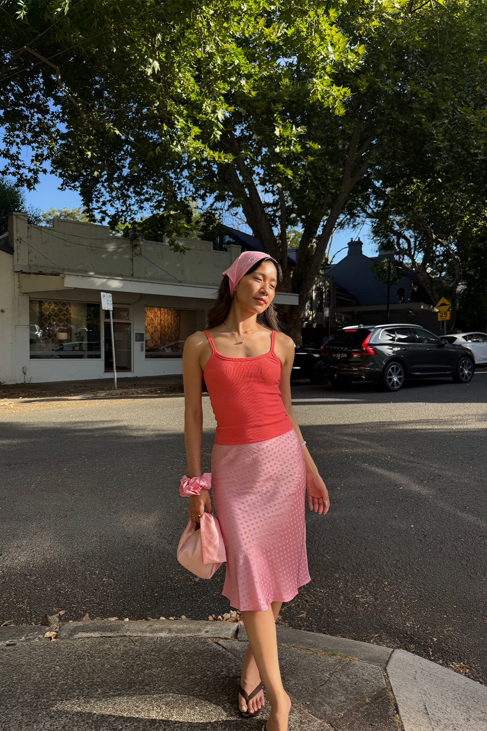 Bias Knee Skirt Jacquard Rosa