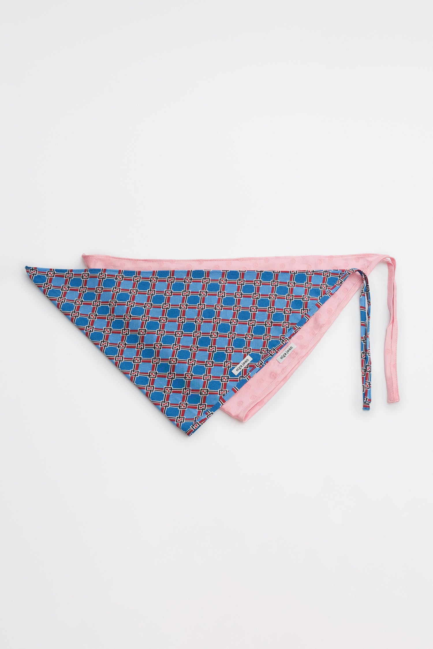 Triangular headscarf made from silk off-cuts from our apparel production. Designed with self-bind ties that can be secured under the chin or at the back of the head. Finished with a mini Olga Joan label.