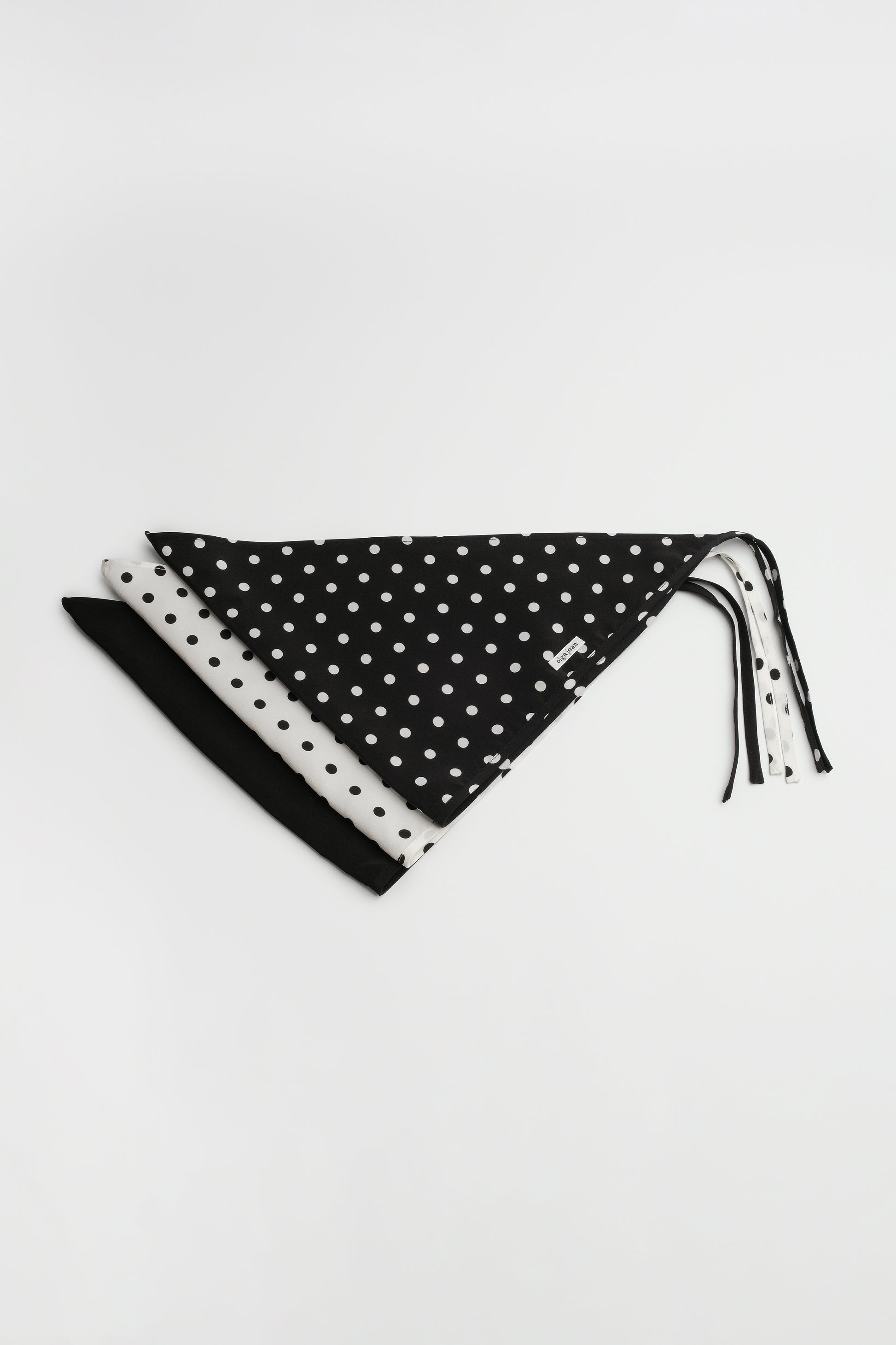 Triangular headscarf made from silk off-cuts from our apparel production. Designed with self-bind ties that can be secured under the chin or at the back of the head. Finished with a mini Olga Joan label.