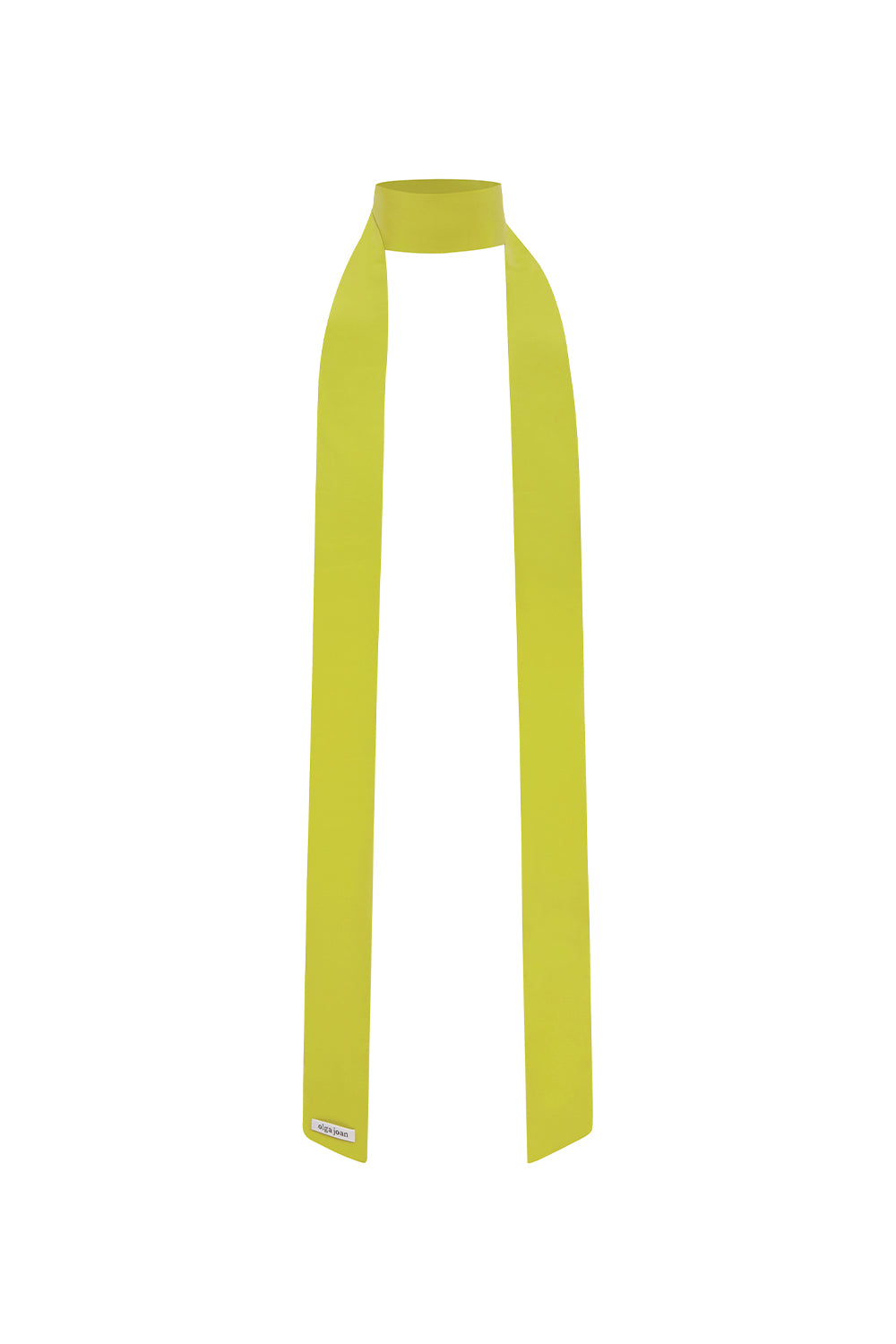 Slim scarf crafted from 100% silk off-cuts from our apparel production. Designed with pointed ends and finished with a mini Olga Joan label. Can be styled around the neck, head, or waist.