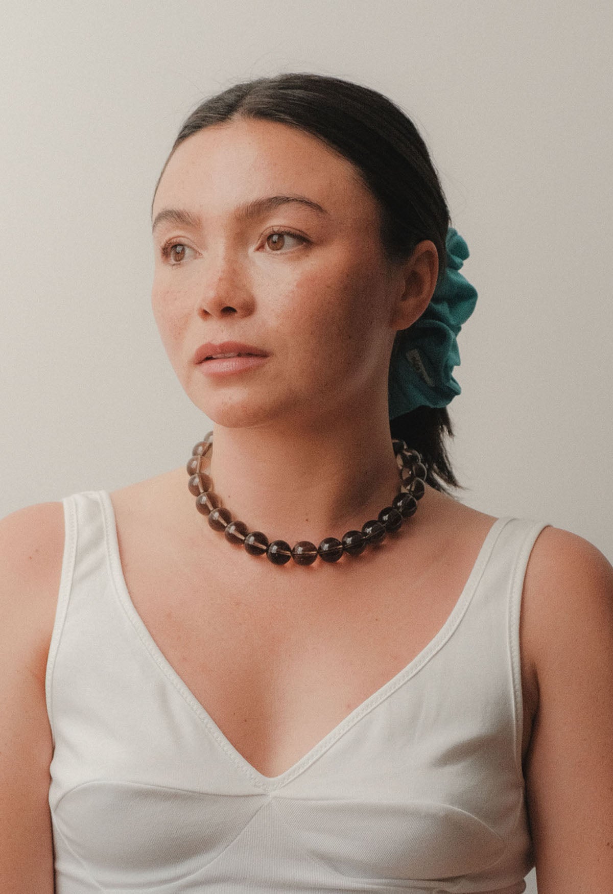 A collaboration between Olga Joan and Sun Ray. Smoky quartz beads, natural and un-dyed, strung on silk. 14K gold-plated toggle closure. Lead and cadmium free, nickel safe.