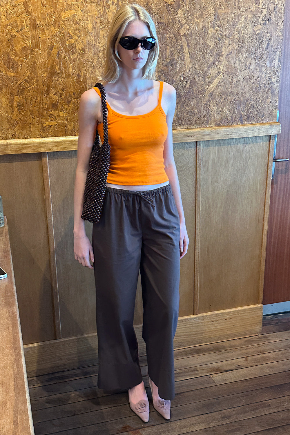 Classic ribbed singlet in stretch cotton. Features a scoop neckline and twin-needle stitched finish.
