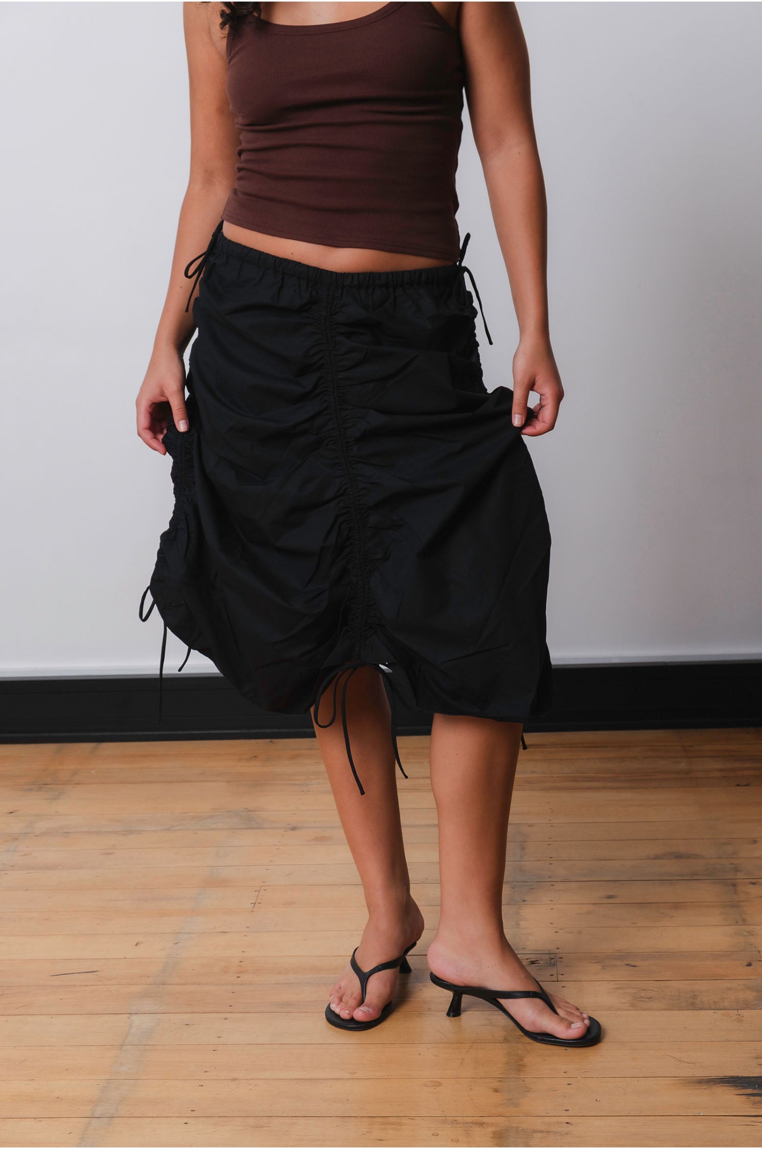 Ruched skirt in plain-weave cotton/tencel, featuring an elasticised drawcord waist & adjustable ruching through the front and sides, allowing you to customise the length and gather as desired.