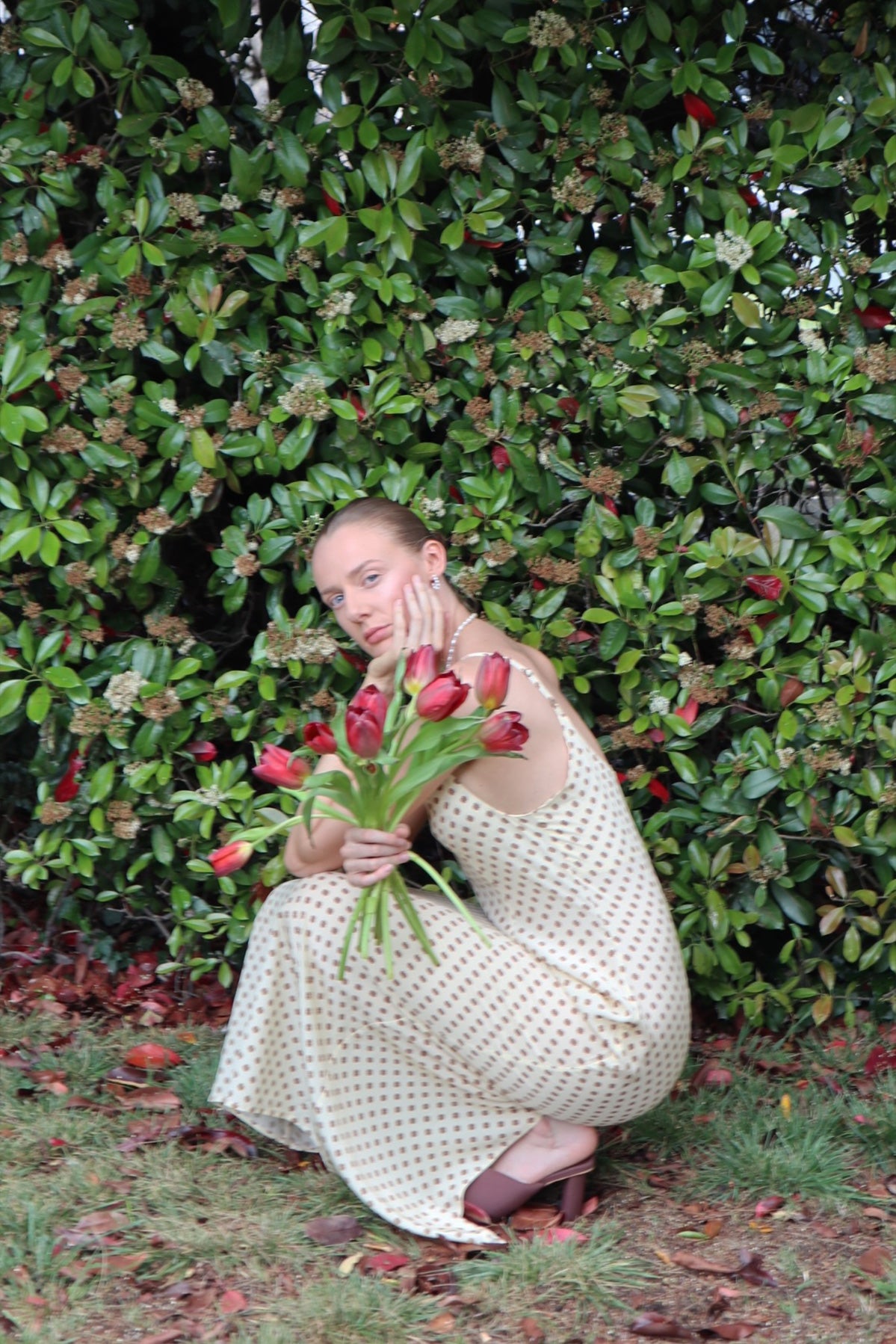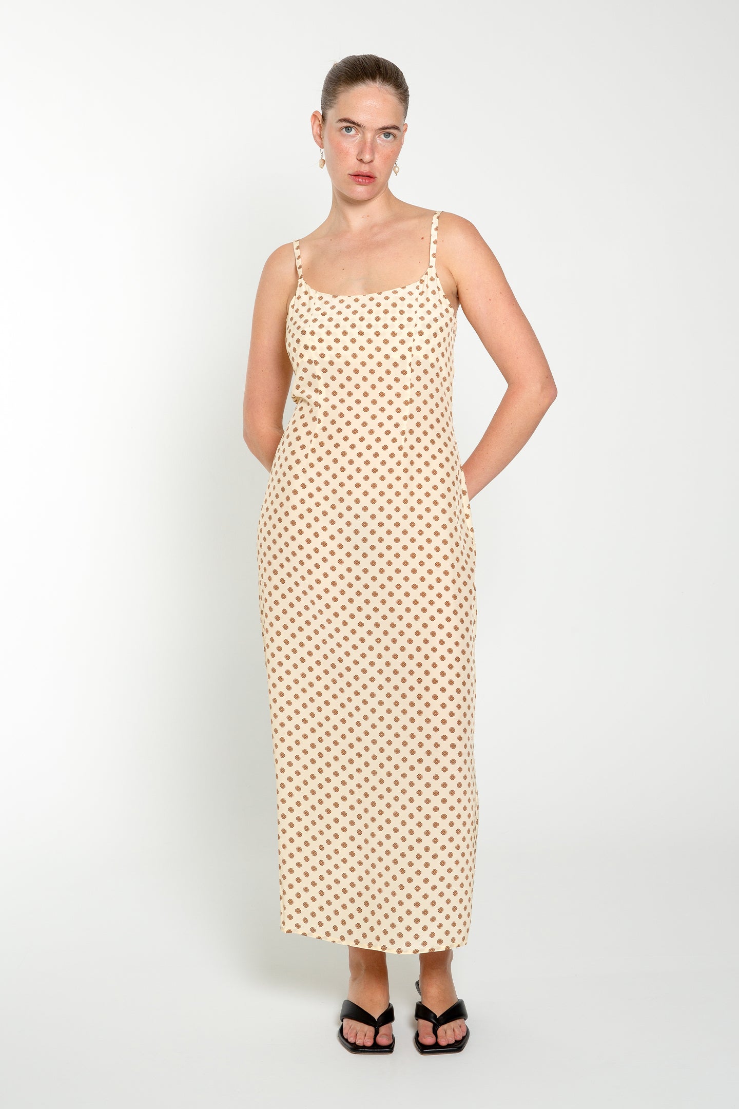 Cut on the straight grain for a structured fit, offering contrast to the fluidity of bias-cut styles. Made from mulberry silk crepe de chine, it features a curved neckline, princess seams, and adjustable straps. Finished with a centre back invisible zip and a subtle hem split for ease of movement.